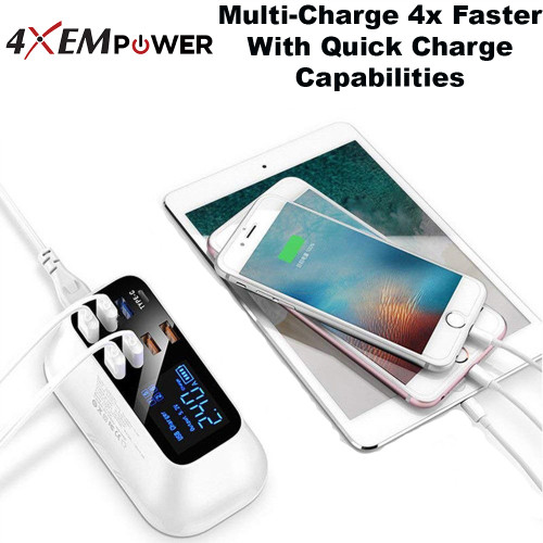 4XEM's 40W 8-Port Charger provides 8 USB ports to charge 8 different devices at once. Equipped with an LED display you will be able to keep track of the status of each device's charge simply and in real time. The detachable power cable allows this charger to move where you move. This version of the charger is also equipped with a Quick Charge (QC) port, and a USB Type C port. The QC port is capable of even faster charging by increasing the output voltage to a compatible device. There is also no need to worry about an overcharge as the port and device with only allow what the device is designed for. The advantage of a Type-C port is the smaller shape and the greater ease of plugging in, since it is not reversible. Additionally, Type-C can carry more power which decreases charge times. Get back to full charge fast with this version of 4XEM's 40W 8-Port Charger.