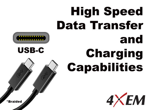 4XEM's USB-C to USB-C 40 Gbps Cable offers high speed connections for your tech networks. Capable of a maximum data transfer rate of 40 Gbps (gigabits per second) you will have no trouble viewing a 4K movie or complete data backups in minutes. In addition to high transfer rate our cable is also able to charge your devices. With access to 100W of power, this cable can serve as an additional power supply for your device. The nylon braided cable allows this cable to resist tearing, cutting and other common forms of cable damage. Get high speed connections with damage resistance thanks to 4XEM's Braided USB-C to USB-C cable.