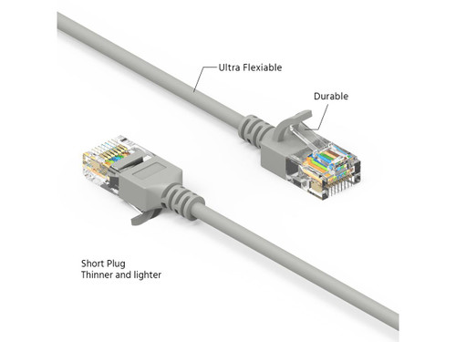 7Ft Cat6A UTP Slim Ethernet Network Booted Cable 28AWG Gray