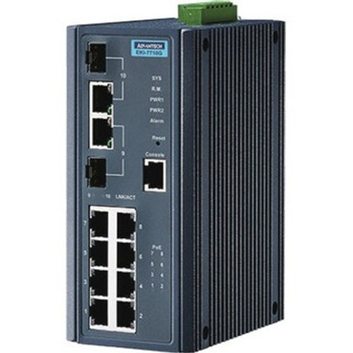Elevate your network infrastructure with the Advantech EKI-7710G-2CP-AE, a powerful and versatile 8G + 2G Combo Managed PoE+ switch designed for demanding industrial environments. This high-performance switch delivers exceptional reliability, advanced management capabilities, and robust security features, making it the ideal solution for mission-critical applications.