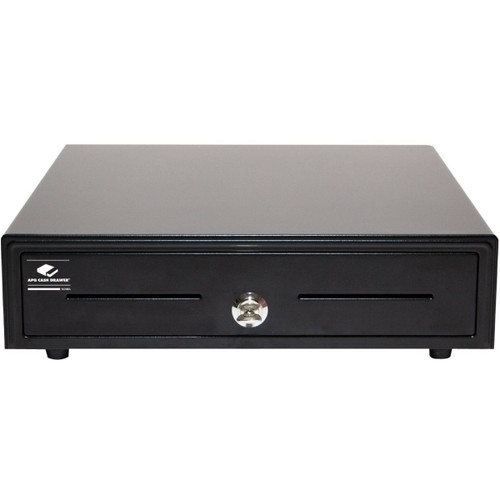 - DIMENSIONS: The apg EKDS320-1-B410-A20 Arlo Series entry level black painted-front cash drawer measures at 16.1w x 16.5d x 3.9h (inch) or 410w x 420d x 100h (mm). When placed on a counter the drawer is large enough to support a monitor