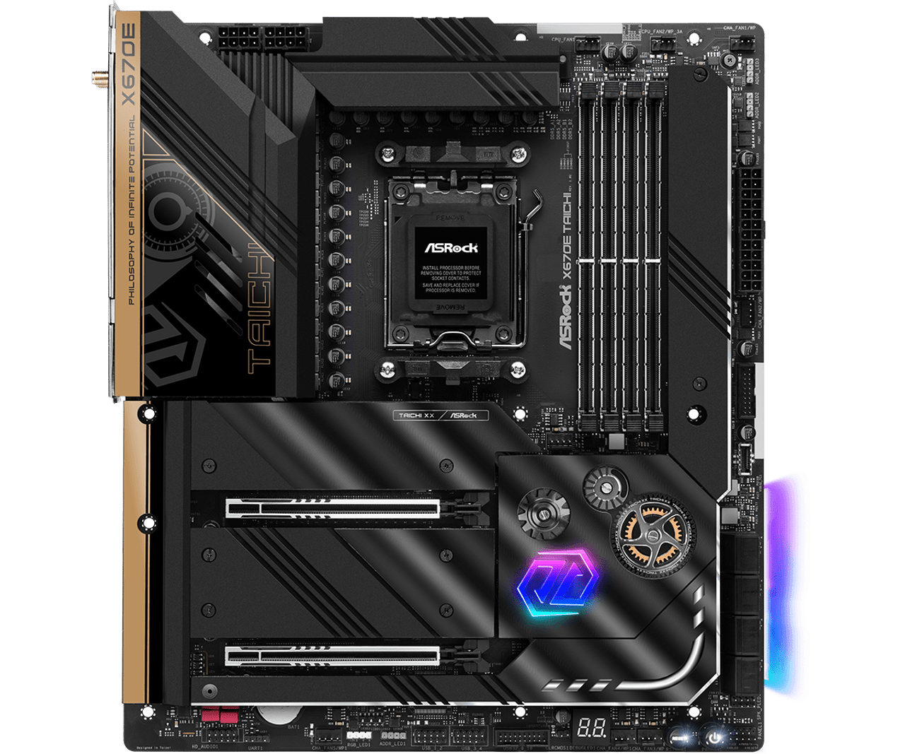- 4 x DDR5 DIMMs, supports up to 6600+(OC)