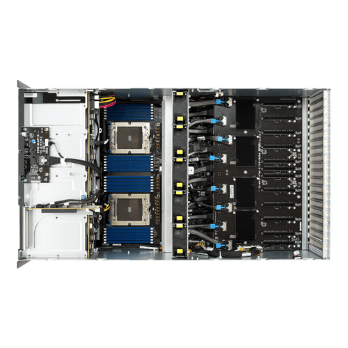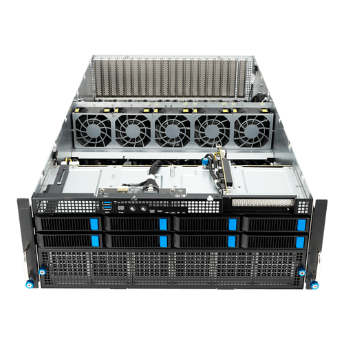 Asus AMD EPYC 9004 Dual-Processor 4U GPU Server That Supports Eight Dual-Slot GPUs, PCIe 5.0 Switch Solution, Liquid Cooling Solution, Up to 24 DIMM, 13 PCIe 5.0 Slots, Eight NVMe, Four 3000W Titanium Power Supplies