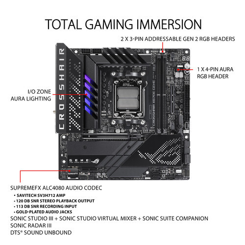 Introducing the ASUS Republic of Gamers CROSSHAIR X670E GENE Micro-ATX Motherboard, a powerful and compact foundation for your next gaming PC build. Designed for enthusiasts and gamers alike, this motherboard boasts an impressive array of features packed into the Micro-ATX form factor.