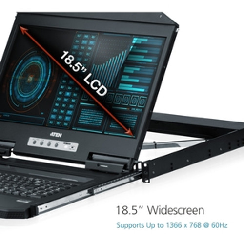 - Integrated LCD KVM console with an 18.5'' LED-backlit widescreen LCD monitor in a single rail housing with top and bottom clearance for smooth operation in a 1U high system rack