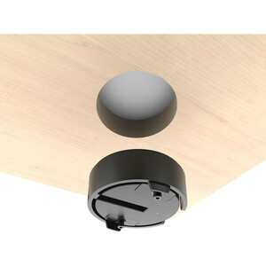 With hidden installation, the wireless charging pad is installed beneath a desk or table for minimal impact, and charges through most non-metallic thin laminate or veneer materials. Installation is easy thanks to commonly available stock or drilled hole dimensions, although professional installation is recommended. A separate window/table sticker is included to inform customers that wireless charging is available here.
