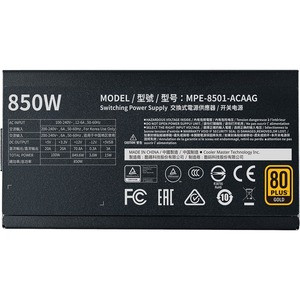 Cooler Master Full Modular 80 Plus Gold ATX Power Supply Unit - Internal - 120 V AC, 230 V AC Input - 3.3 V DC @ 20 A, 5 V DC @ 20 A, 12 V DC @ 70.8 A, 12 V DC @ 300 mA, 5 V DC @ 3 A Output - 850 W - 1 Fan(s) - 90% Efficiency