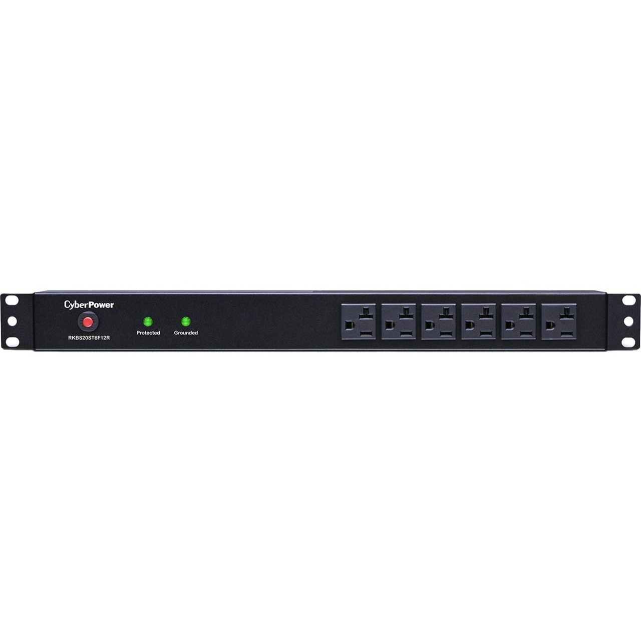 CyberPower RKBS20S2F8R Rackbar 10 - Outlet Surge with 1800 J - Clamping Voltage 400V, 15 ft, NEMA 5-20P, Straight, EMI/RFI Filtration, Black, Lifetime Warranty 15FT CORD 120V 120A 1800J