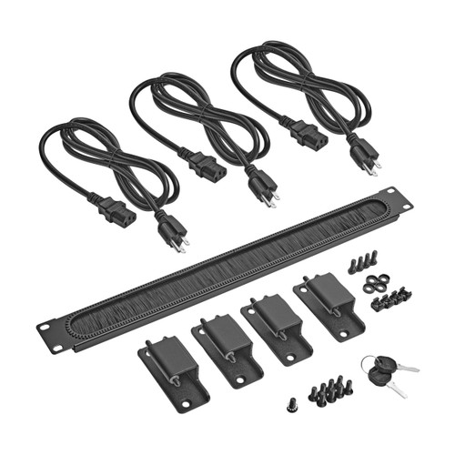 - Comprehensive Package: Includes three fan panels (with four fans each), two air filters, a perforated outer panel, fan guards, three 6-foot power cords, an SR1UBRUSH cable management accessory, mounting hardware, and an owner’s manual for easy installation and operation.