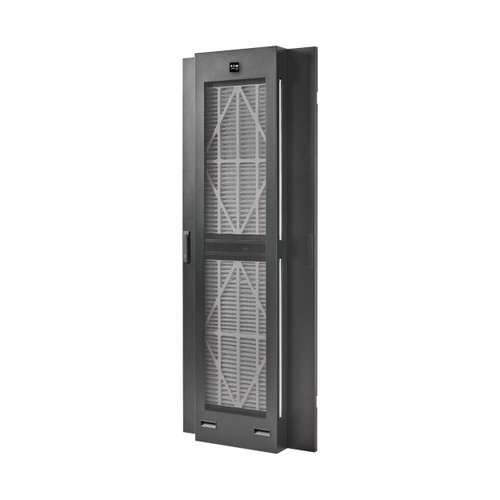 The Eaton Tripp Lite SmartRack Fan Front Door Kit (SRFFD4230) is a high-performance cooling solution tailored for 42U wide SmartRack enclosures, designed to enhance airflow and maintain optimal operating temperatures for rack-mounted equipment. Equipped with 12 120V fans across three panels, it delivers robust airflow (up to 93 CFM at 60Hz) to prevent overheating, ensuring peak performance and reducing the risk of costly downtime or equipment damage. Pre-installed dust filters keep air intake clean, protecting sensitive components, while the plug-and-play design with toolless mounting hardware and included power cords ensures easy installation. Constructed from heavy-duty cold-rolled steel with a black finish, the SRFFD4230 is built for durability and comes with a 2-year limited warranty, making it ideal for data centers, server rooms, and network closets with wide 30-inch enclosures.