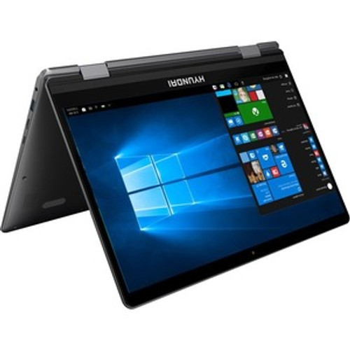 Combining heavyweight performance with lightweight portability, the Hyundai HyFlip possesses an Intel Celeron processor enabling high-speed connectivity and ultra-responsive multi-tasking performance in a sleek package. This 2-in-1 convertible laptop is all about the details - a foldable 360° design and its ultra-responsive FHD touch screen display. The Hyundai HyFlip is packed with speed and power to amplify your productivity. Expand your storage capacity with its M.2 SSD slot and microSD slot. Faster boot-ups and smoother transitions when you flip from laptop mode into tablet and back. This HyFlip notebook allows you to work and play in style with everything you ever need for an ultra-durable and portable laptop. Backed by a limited 1-year warranty, every Hyundai product is built with absolute quality and precision.- 14.1"" Celeron Laptop