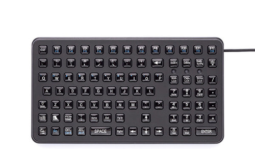 iKey’s innovative SL-91 mobile keyboard was designed to accommodate rugged applications in manufacturing, material handling and remote data entry. Its unique epoxy-coated keys are arranged for convenient gloved-hand use. It features a small-footprint design, mounting holes in its case and a 10-key numeric pad. Like other keyboards in the iKey line, the SL-91 is constructed using a robust polycarbonate case and industrial silicone keypad, sealing it from dust, liquids and corrosives. The SL-91 is a true workhorse and in use globally. Featured red LED backlighting.