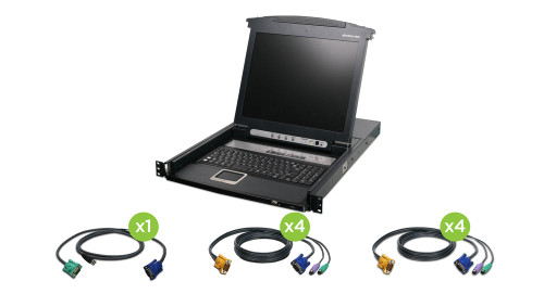 - 8-Port KVM Switch with integrated 17" LCD monitor, keyboard, and touchpad