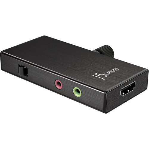 Capture and live stream video from almost anywhere using the JVA02 Live Capture Adapter from j5create, which connects HDMI-compatible DSLR cameras, gaming consoles, media players, and more to your compatible computer or phone's USB 3.1 Gen 1 Type-C port. The JVA02 captures video to your computer or phone at up to 1920 x 1080 FHD resolution at 60 fps, for smooth and clear picture quality. In addition to having an HDMI input for recording and live streaming games and other media, the JVA02 has both a 3.5mm headphone jack and a microphone jack to add your voice to the mix. An integrated switch allows you to choose between recording your voice only, both the game and voice, or limiting it to the game audio. A convenient cold shoe adapter mount is included to broadcast outdoors directly from your camera through connected smartphones. The device can also be used to transform your DLSR camera into a webcam for video conferencing and other applications.