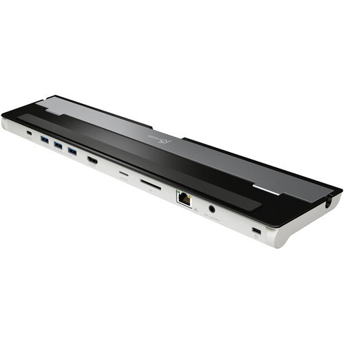 Enhance your productivity by connecting the USB Type-C 4K HDMI Docking Station from j5create to your compatible laptop. Designed to work with Windows, macOS, and Chrome OS laptops with DisplayPort in alt mode compatibility, this bus-powered docking station boosts your multitasking efficiency by allowing you to connect a single 3840 x 2160 resolution, 30 Hz 4K monitor to its HDMI port. The three USB 3.1 Gen 1 Type-A ports can transfer up to 5 Gb/s with compatible flash drives while letting you add keyboards, mice, and other wired peripherals. Connect a separately purchased power adapter to the USB Type-C passthrough port to transfer up to 100W of power to compatible laptops. Other features include SD and microSD card slots, a Gigabit Ethernet port, and a 3.5mm headset jack.