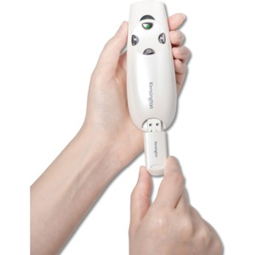 Presenter expert features an intuitive, four-button layout to easily go forward and back on your slides while the other two buttons let you hide your screen and use the green laser pointer. At the touch of a button, highlight any area of your presentation with a green laser that's 10 times brighter than a standard red laser. Plug-and-play, 2.4 GHz wireless connection provides a 150' range to let you roam the room with ease. The presenter delivers secure AES 128-bit encryption for reliable performance through a USB receiver with no driver required. Internal receiver storage offers a convenient place to store your wireless USB receiver so it won't get lost. Specially designed contours make holding the presenter extremely comfortable. Convenient carrying case stores and protects the presenter while on-the-go.