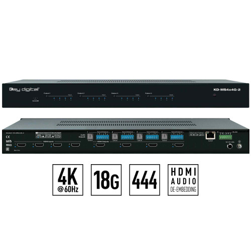 This flexibility makes KD-S4x4G-2 an ideal product for a wide range of professional AV systems integration with various audio setups.