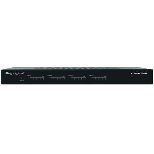 The KD-MS4x4G-2 is an HDMI matrix switcher with support of 4K resolution HDCP 2.2, and signal bandwidth of up to 18Gbps for routing up to 4 HDMI sources to 4 HDMI displays at any time and in any combination.