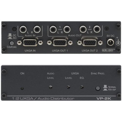 Kramer 1:2 Computer Graphics Video & Stereo Audio Distribution Amplifier accepts 1 computer graphics video or stereo audio signal and distributes it to 2 identical outputs. It supports resolution up to or higher than UXGA (Ultra eXtended Graphics Array)