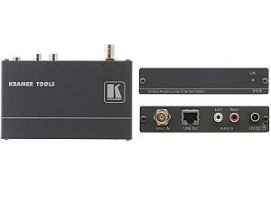 The 717 and 718 are a twisted pair (TP) transmitter and receiver for composite video and unbalanced stereo audio signals. The 717 transmitter converts composite video and stereo audio into a twisted pair signal and the 718 receiver converts the twisted pair signal back to composite video and stereo audio.