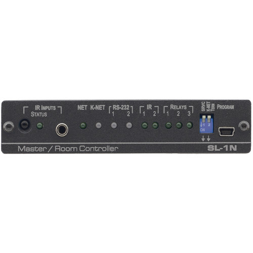 The SL-12 is a master room controller that can operate over Ethernet (LAN) with control ports that include: one bidirectional RS-485, four RS-232, four IR, four GPI/O, and eight relay. It controls devices such as scalers, video displays, audio amplifiers, DVD players, sensors, screens, shades, door locks, and lights. Multiple Kramer Ethernet gateways can be used to add remote I/O ports. The SL-12 includes a KNET(TM) connector interface which enables access to the master controller from auxiliary room controllers sucha s control keypads. The SL-12 can also provide power to auxiliary room controllers via the KNET(TM) connectors.