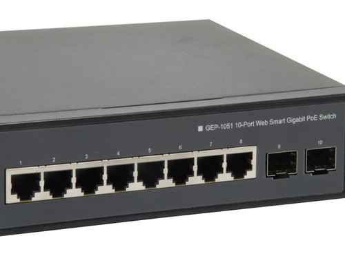 LevelOne GEP-1051 10-Port Web Smart Gigabit PoE Switch, 8 PoE Outputs, 2 x Gigabit SFP, 70W PoE Power Budget -52089903