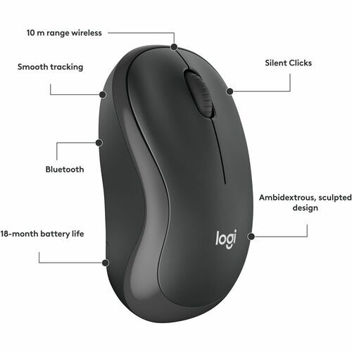 Logitech M240 Silent Bluetooth Mouse, Wireless, Compact, Portable, Smooth Tracking, Graphite - Travel Mouse - Optical - Wireless - Bluetooth - Graphite - 3 Button(s) - Symmetrical