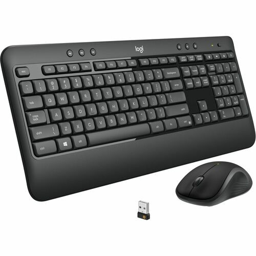 Depend on this wireless keyboard and mouse combo to work perfectly every time you sit at the desk. Spill-resistant, full-size keyboard won't require new batteries for 36 months and your mouse stays powered for 18 months. Plug and play your keyboard and mouse with one tiny USB receiver with Unifying technology delivers a reliable and encrypted wireless connection up to 10 meters away with virtually no delays or dropouts. Convenient and essential hot keys give you direct access to media, calculator and battery check functions. All keys have been optimized for improved accuracy and reduced noise. Palmrest and adjustable tilt legs keep you comfortable for long stretches. Stay productive for hours with a wireless mouse designed to fit comfortably in either your right or left hand. The contoured shape and soft rubber side grips fit comfortably in your palm. Enhanced tracking and precise cursor control keep you in command.