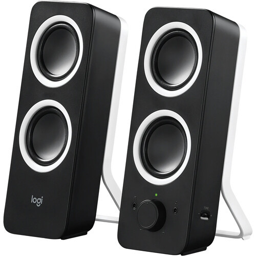 The Logitech Multimedia Speakers Z200 in midnight black are ideal for connecting to sources like a smartphone, tablet, MP3 player, computer or any other audio device with a 3.5mm headphone output. The stereo sound system features an auxiliary input, bass controls, integrated volume and power controls and a headphone jack for private listening.