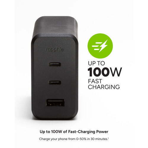 mophie 100W USB-C GaN Wall Charger with Cable (Black) - 409911396