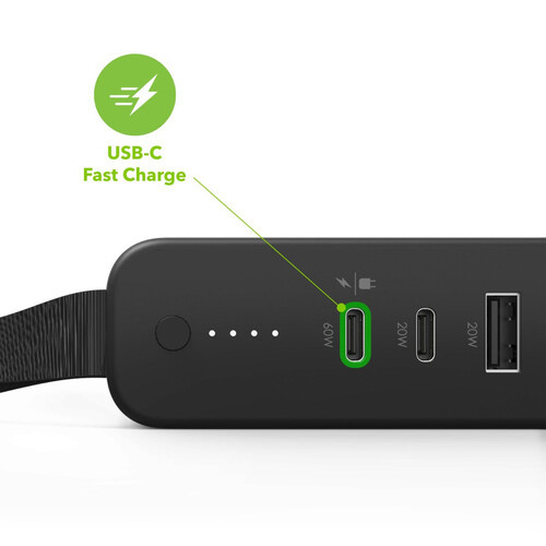 An internal 27,000 mAh battery provides your devices with ample power and can recharge your phone up to five times when out and about. Two USB-C ports offer up to 20 and 60W of throughput through dedicated ports. A single USB-A port also delivers up to 20W of power. For power-hungry devices, a single 3-prong receptacle provides up to 100W of AC output, giving you enough power to run a wide range of devices. You can also charge up to four devices simultaneously with power properly balanced to optimize charging capabilities. You also get an LED power indicator that tells you how much battery life you have left so you know when to recharge the Powerstation.