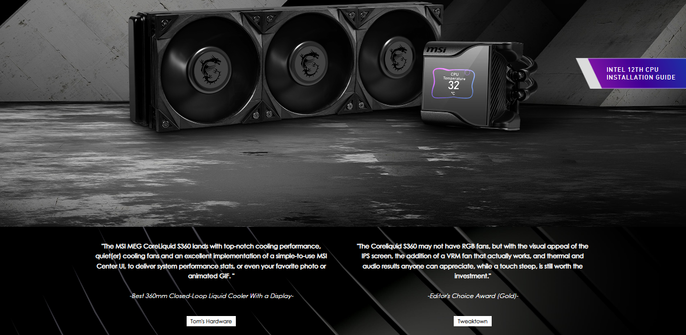- The MEG CORELIQUID S Series liquid cooler provides out of box support for LGA 1700.