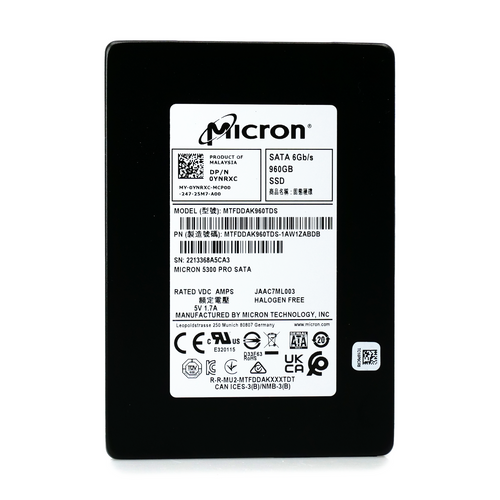 Crucial Micron 5300 Pro 960GB SATA 6Gb/s 3D TLC 2.5 Internal - Sata (Sata/600) - Read Intensive Enterprise Solid State Drive - MTFDDAK960TDS-1AW1ZABYY