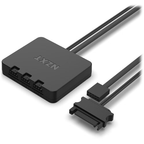 This is a three-pack of NZXT F120 RGB Core Fans, in black, along with a single NZXT RGB Controller with three channels for synchronized lighting control. The F120 is a 120mm hub-mounted fan with eight individually-addressable LEDs perfectly diffused through the semi-translucent blades for a brilliant lighting effect. A refined hub and blade design offer enhanced static pressure by pushing air through your radiator while providing great airflow. This allows for superior heat dissipation when paired with a liquid cooler or heatsink and used for both intake or exhaust locations. Personalized lighting combinations can be achieved through NZXT CAM software. The hub can be seamlessly synced with all your compatible NZXT lighting accessories.
