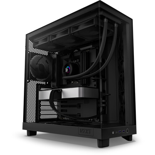 Start your next build strong or give your current rig a new housing with the NZXT H6 Flow ATX Case in black. The panoramic layout features two tempered glass sides and an angled corner for front fans that give this case a unique aesthetic and clear view of the internal build. With room for an ATX, Micro-ATX, or Mini-ITX motherboard, as well as clearance for up to a 14.37" GPU, 7.87" PSU, and 6.42" CPU cooler, this case offers a wide variety of build options.
