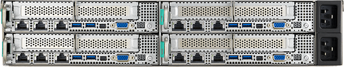 - 2 x 2.5” hot-swap drive bays (NVMe/SATA/SAS) + 2 x M.2 (Up to 22110) (Support SATA/PCIe M.2) per node