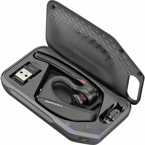 Poly Voyager 5200 Bluetooth Headset provides professional-grade sound no matter where you take the call. Thrive in any environment on any of your devices with versatile connectivity and Bluetooth technology. Cutting-edge noise-canceling technology eliminates background noise so your voice always sounds clear. Four-mic array and adaptive Digital Signal Processors (DSP) work together to cancel disruptive background noise like traffic and crowds. Headset supports HD voiceover wideband networks and devices to enhance speech quality so your caller clearly hears and understands you. Six layers of unique, WindSmart technology detects wind direction and responds accordingly so your voice comes through clearly. Smart sensors know when the headset is on or off. Answer calls by putting on the headset. Pause music for incoming calls or mute a call by taking the headset off. Manage your calls with voice commands by saying "answer" or "ignore." Charge lasts up to 7 hours of talk time.