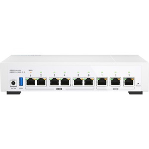 The QHora-322 provides three 10GbE ports (compatible with 10G/ 5G/ 2.5G/ 1G/ 100M) and six 2.5GbE ports (compatible with 2.5G/ 1G/ 100M) For ultimate high-speed wired networking performance.