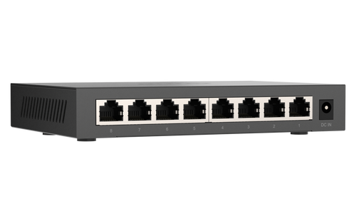 The QSW-1108-8T-R2 features eight 2.5GBASE-T Ethernet ports and supports NBASE-T and Multi-Gigabit standards for 2.5G/1G/100M speeds, with a total switching capacity of 40Gbps. Connect devices like desktops, laptops, NAS, Wi-Fi 6/6E access points, set-top boxes, and game consoles for ultra-smooth backups, virtualization, media editing, and immersive entertainment.