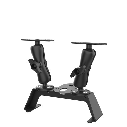 The RAM Fishfinder Deck Kit with Dual Marine Electronic Mount (RAM-FF1-D-115-2) is a robust, powder-coated aluminum bracket configured with two D size fishfinder mounts that allows you to mount two fishfinders side-by-side. Whether you're trolling deep waters or scanning shallow coves, this heavy-duty mount helps you take in more data for smarter navigation and better results. Built for versatility, the Deck Mount features a wide array of pre-drilled hole patterns, making it compatible with popular fishfinder brands like Garmin, Lowrance, and Humminbird . It also includes three sets of 4-hole AMPS patterns and three sets of tri-hole patterns for seamless integration with RAM Mounts D size bases. This solution comes with the RAM Foot Stabilizer for added support and stability in rough waters. Crafted from marine-grade aluminum, this fishfinder mounting bracket is corrosion-resistant and engineered to withstand harsh marine environments—lasting longer than your boat and standing up to the roughest conditions. In fact, we guarantee it with a Lifetime Warranty for all RAM components.
