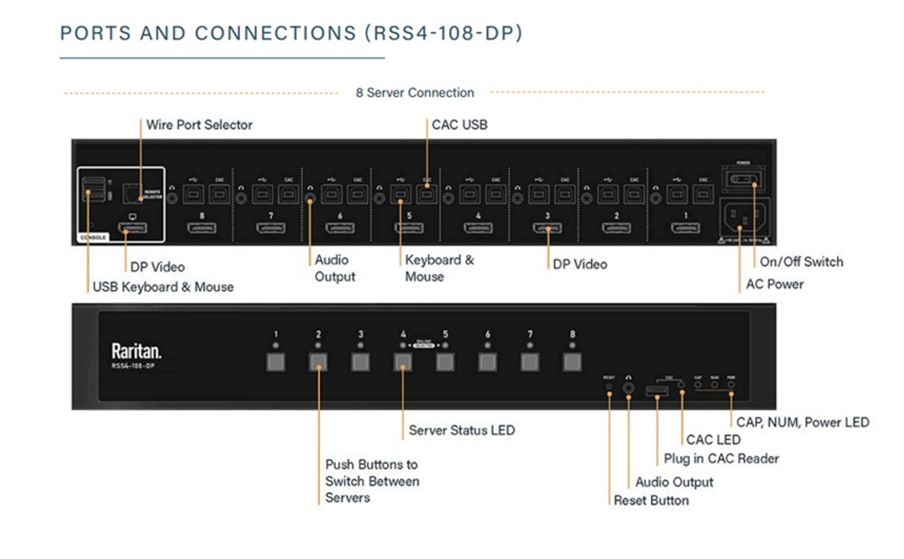 Raritan 4-port Single Head SecureSwitch, NIAP PP4.0 certificated, DP, support CAC - 1 Local User(s) - 4K - 3840 x 2160 - 50 Hz, 60 Hz - 6 x USB - USB 2.0 - Desktop - 5 x DisplayPort - TAA Compliant - RSS4-104-DP