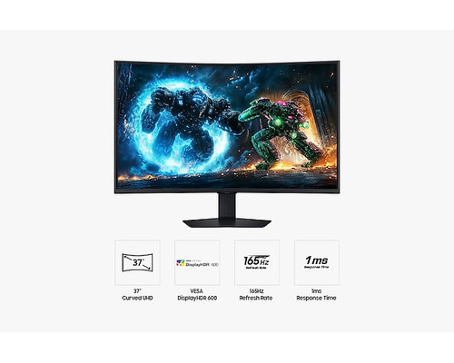 Odyssey G7 G75F 37-inch 4K gaming monitor on its own. This appears to be a smaller and somewhat cheaper version of the 40-inch variant There are quite a few differences between the two, with the 37-inch G75F sporting a curved 1000R 16:9 VA panel with a resolution of 3,480 x 2,160 pixels and a maximum refresh rate of 165 Hz. The 40-inch version gets a 21:9 1000R VA panel with a 5,120 x 2,160 resolution and a higher max refresh rate of 180 Hz.