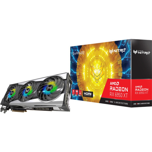 The Nitro+ AMD Radeon™ RX 6950 XT delivers powerhouse 4K gaming performance with vivid visuals for an elevated experience. The all-new innovative Wave Fin Design working in tandem with our V-Shape Fin Design for GPU Cooling reduces wind friction and centralizes airflow for optimal heat dissipation and a virtually silent system. Cutting edge Memory & VRM Cooling with Heat-Pipes and next gen K6.5 Memory Pad ensures you can push your performance to new limits while keeping the Nitro+ AMD Radeon™ RX 6950 XT components icy cool. The brand new Hybrid Fan Design combines the tranquility and strong air pressure features that exhibit ultimate levels of downward air pressure through the fan while keeping fan noise low. Incredible ARGB Lighting across the graphics card using our Sapphire TriXX software fused with beautiful aesthetic styling will ensure the Nitro+ AMD Radeon™ RX 6950 XT is a stunning addition to every enthusiast gamer's PC. Nitro Charge your PC with the Nitro+ AMD Radeon™ RX 6950 XT and elevate your gaming experience to the next level!