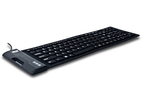 Designed for outdoor or mobile settings, this hyper-flexible compact-sized keyboard is easily packed away, cleaned with soap and water, and accessible whenever you need it. The keyboard is made with antimicrobial material that protects against germ buildups between washings. The keyboard has a USB interface that easily connects without having to install specific drivers. Aside from these practical features, the keyboard is made for smooth and quiet performance.(Solution: Health)