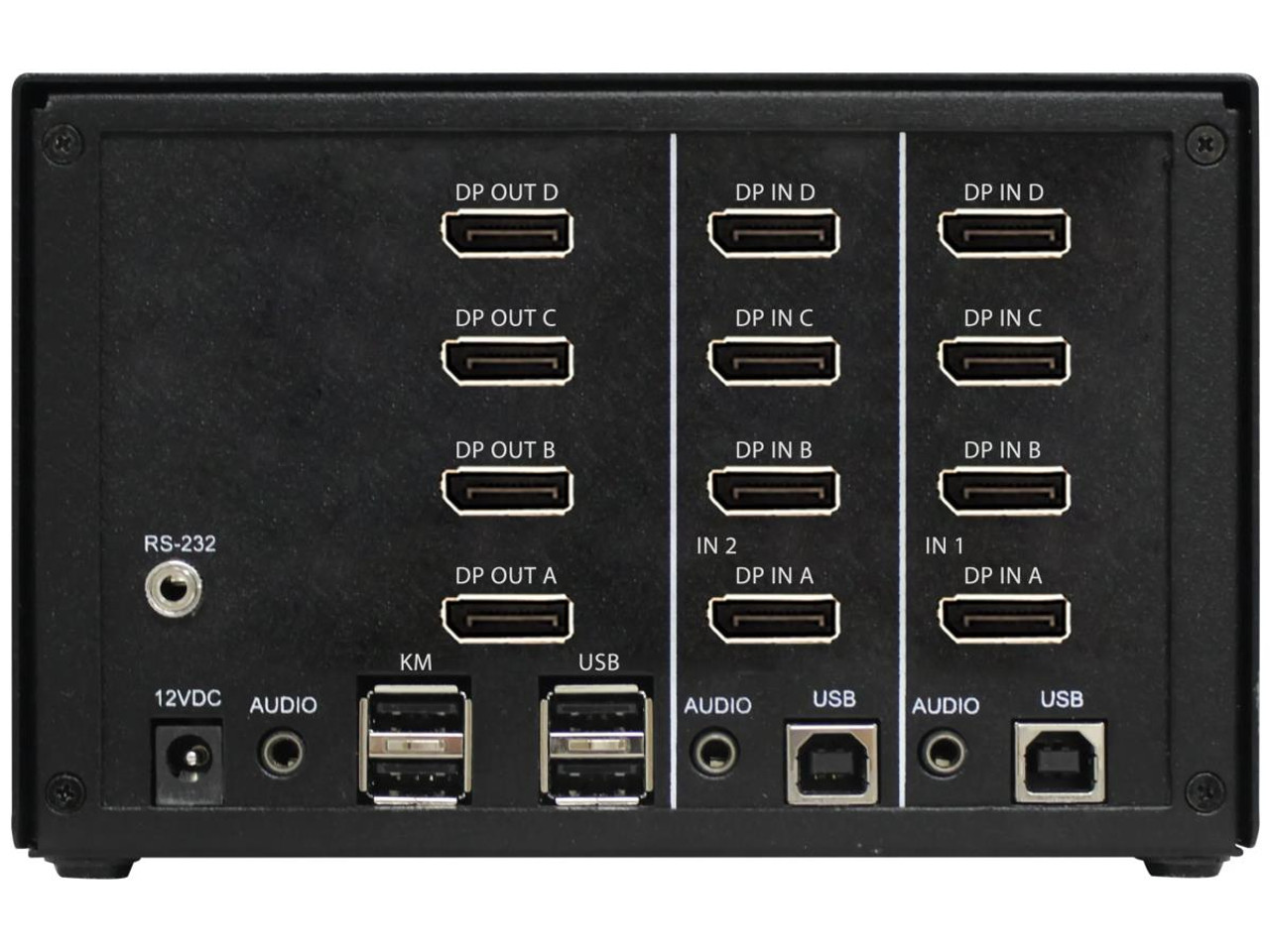SMARTAVI 4K60 DisplayPort, 4-Port, Quad-Head, KVM Switch with Emulation, USB 2.0 and Stereo Audio Support. Includes: SM-EDPN-4QS, PS12VD3A -SM-EDPN-4Q-S