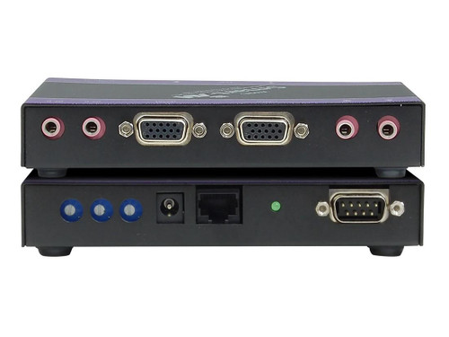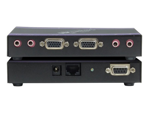 - Sends high-resolution VGA, stereo audio signals, RS232 or IR from one source to 2 locations