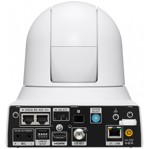 Capture every point of view in meetings and lectures With the white SRG-120 4K NDI-Ready PTZ Camera With 12x Optical Zoom from Sony. Out of the box, this camera captures Video at resolutions up to UHD 4K60 via its 8.5MP CMOS sensor and a 12x optical zoom Lens With a 4.4 to 52.8mm focal length range that delivers fields of view of up to 70°.