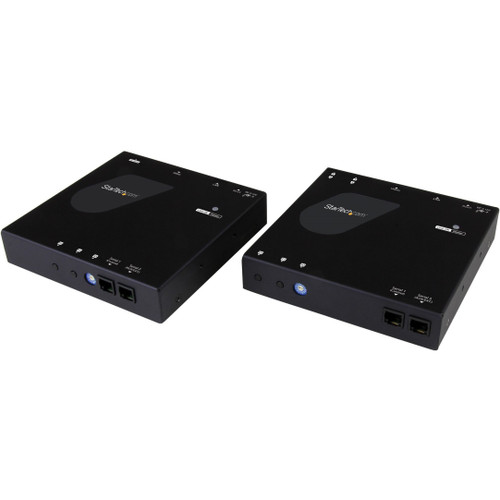 This HDMI over IP kit lets you extend an HDMI signal, as well as four USB peripheral device connections, over your network. You can use additional receivers (sold separately) to distribute the HDMI and USB signals to multiple locations and combine your remote displays to create a video wall while using the USB connection to extend a touch screen to create an interactive digital signage presentation.