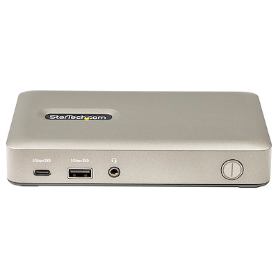 This USB-C docking station lets you use a single USB Type-C port on your laptop or tablet to add essential connectivity while charging your device via 65W USB Power Delivery 3.0. The dock enables you to connect your device to a single monitor of your choice between DisplayPort (4K 30Hz) or VGA (1080p 60Hz) video output. For peripheral connectivity the dock features three USB 3.1 Gen 1 (5Gbps) Type-A ports including a BC 1.2 port to power and charge your USB devices, a USB 3.1 Gen (5Gbps) Type-C port, a 3.5mm headset audio port, and Gigabit Ethernet.