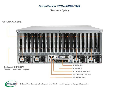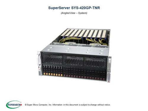 The Supermicro A+ Server 4124GS-TNR is a 29" depth 4U GPU server that features dual AMD EPYC Processors, up to 8TB DDR4 ECC Registered Memory in 32 slots, supports up to ten double-width GPUs. The Supermicro 4124GS-TNR comes with up to twenty-four hot-swap 2.5" drive bays, eight hot-swap cooling fans, and four 2000W redundant titanium level power supplies.